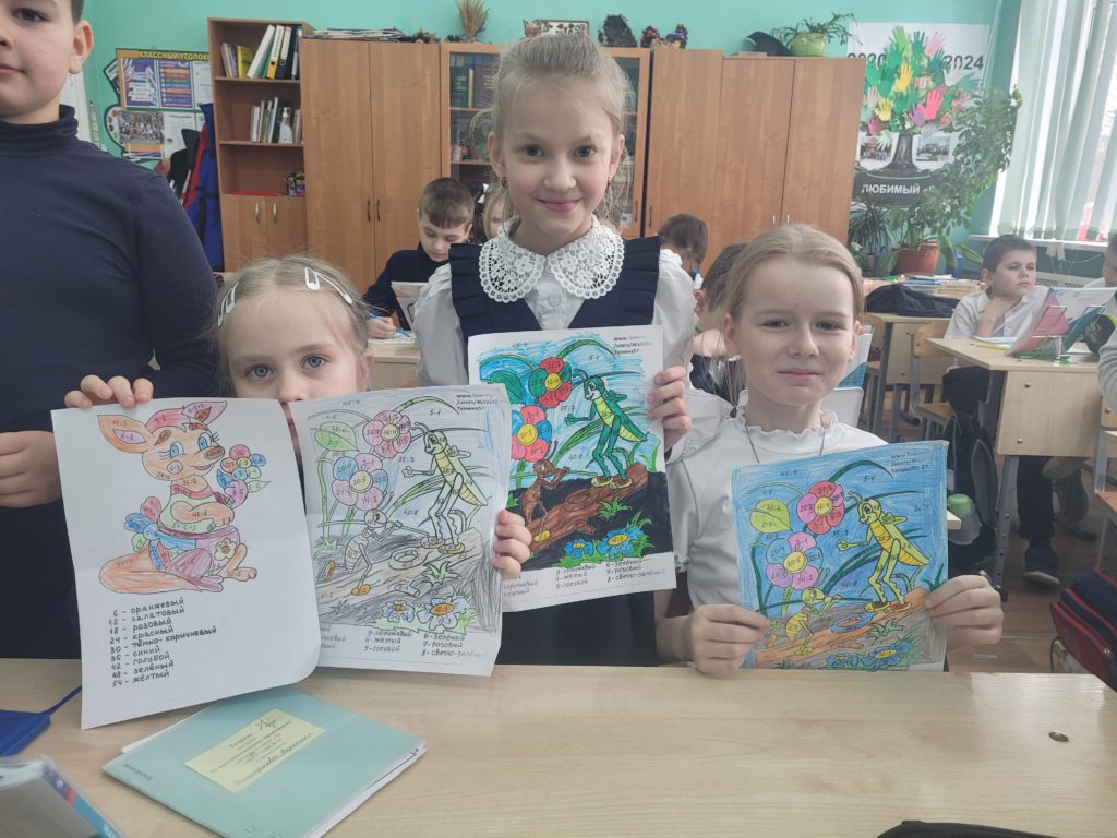 После каникул ученики 3Э класса снова начали с математической недели. В этот раз работали с устным счетом и повторяли таблицу умножения в интересной форме: каждый урок математики начинали с математической раскраски на разные примеры таблицы умножения. Повторение-мать учения. Тренировка никогда не бывает лишней, особенно в сочетании с любимым занятием- раскрашивать.