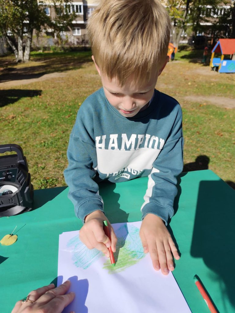 В рамках реализации проекта «Предшкола: стандарт детского сада» на тематической неделе «Каникулярная неделя, находки ДОУ (Мир фантазии и слов)» ребята подготовительной к школе группы на прогулке проявили фантазию и занимались творчеством в технике оттиска. Метод рисования «оттиск» — это нетрадиционная техника, при которой изображение наносится на бумагу под давлением. Это позволяет получать уникальные отпечатки, создавая разнообразные композиции.