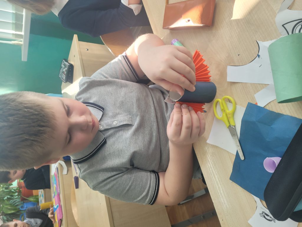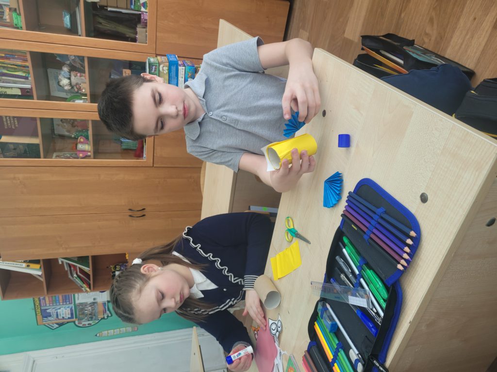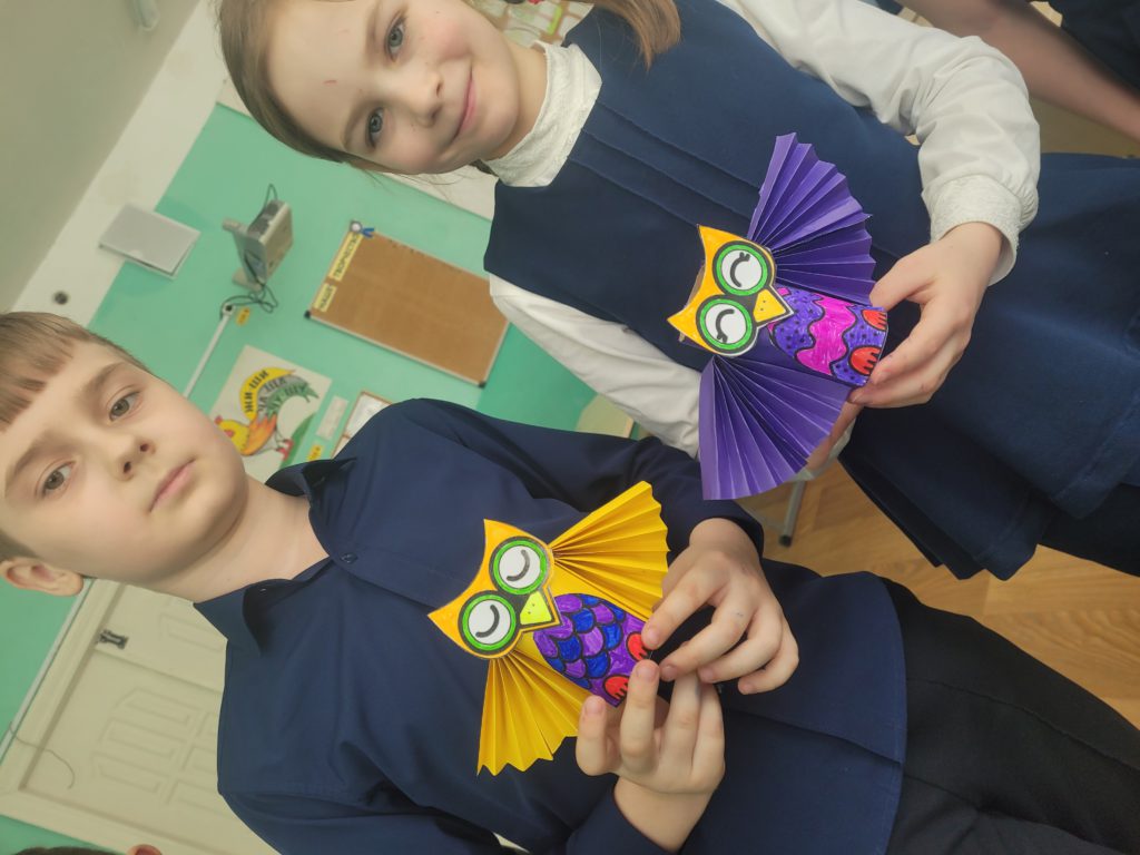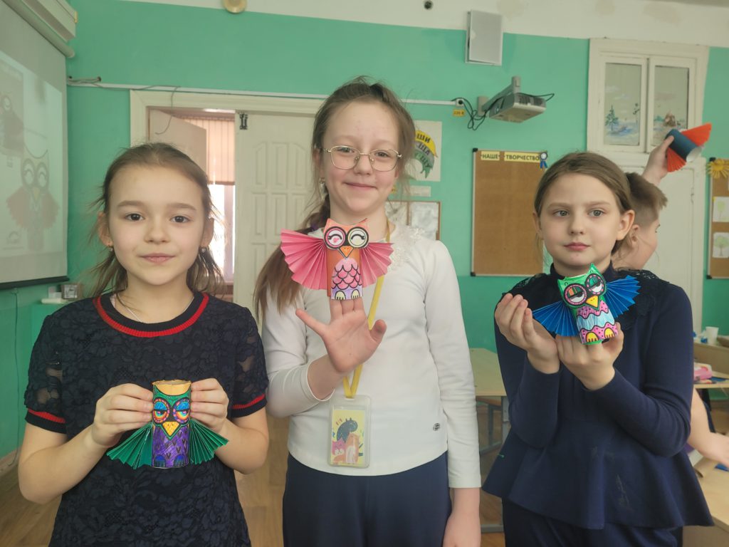 Творческую неделю ученики 3Э класса решили посвятить поделкам из подручных материалов. Выбор остановился на обычных втулках от бумаги и бумажных полотенец. Придумали героя и дизайн, обклеили втулки цветной бумагой, сделали гармошкой крылышки и получились прекрасные, яркие и красивые совушки, с которыми играли все перемены. Иногда нам может пригодиться для творчества то, что обычно выбрасывается, главное проявить фантазию!