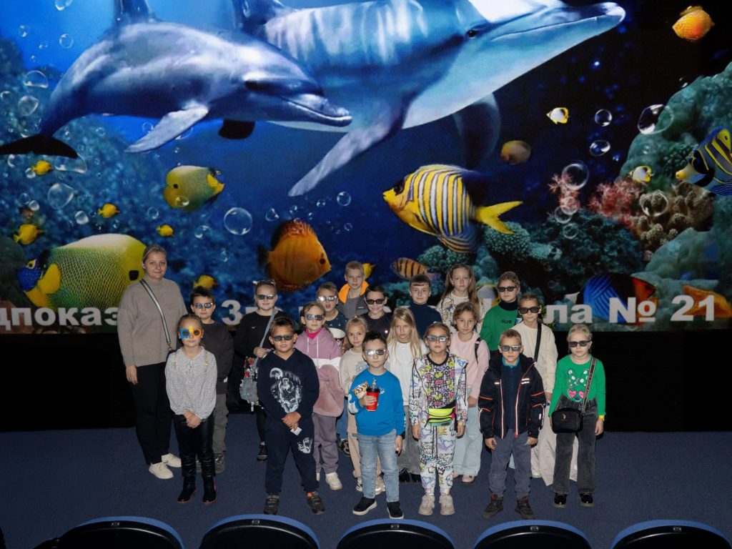 Ребята всем классом и вместе с родителями провели незабываемый вечер в кинотеатре. Посмотрели научный фильм про обитателей глубин океана «Чудеса океана 3D». Фильм был очень познавательный, а эффект 3D перенес ребят прямо в океан, где вокруг них проплывали разные подводные жители и обитатели рифов. Их так и хотелось поймать. Совместных поход очень понравился и детям, и родителям.